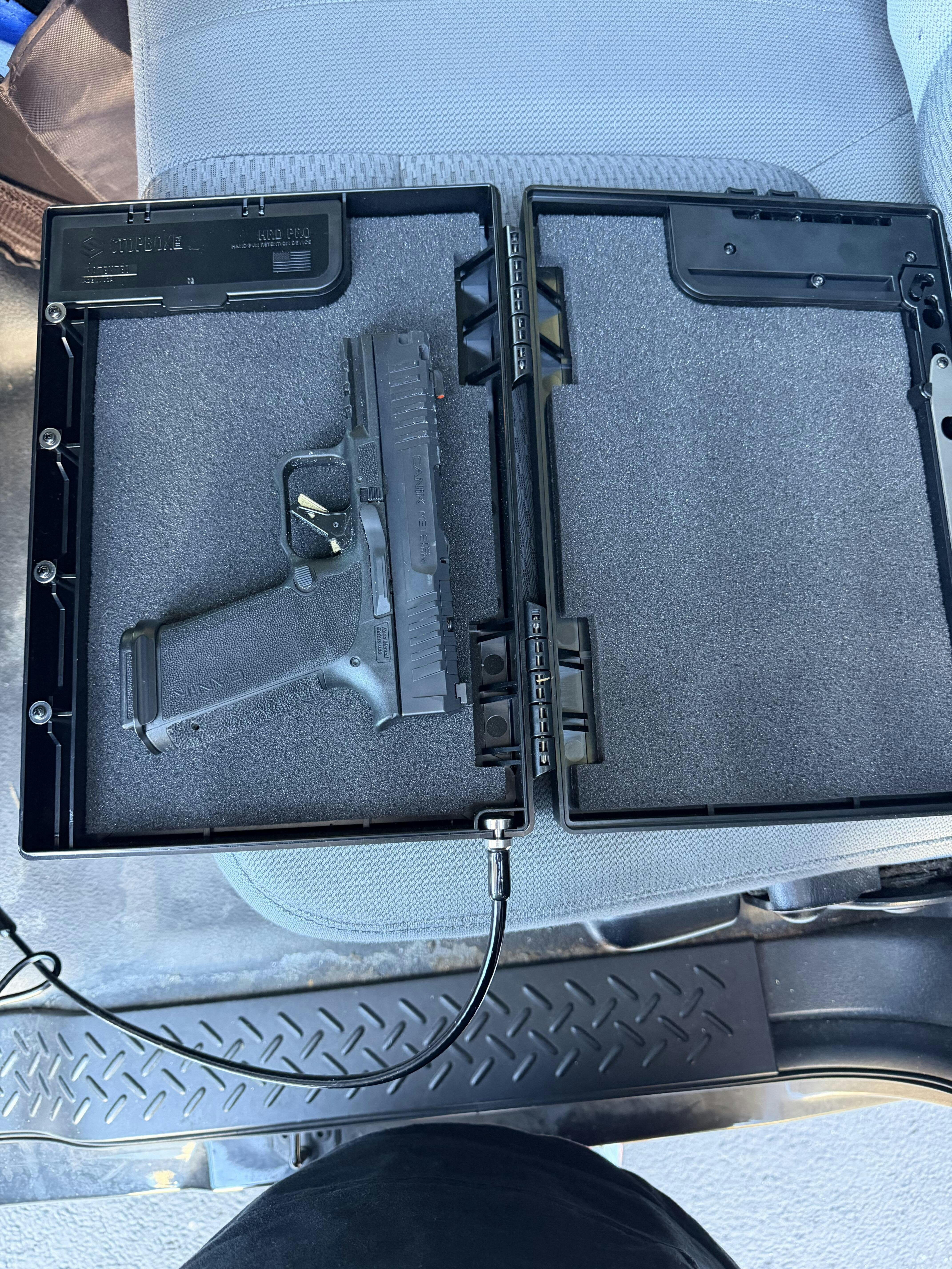 The StopBox! Made by red-blooded Americans, and honestly, the best part about it is that it's all mechanical. There are no electronic failure points, no batteries to die, no software to glitch. It just works when you need it to work.
