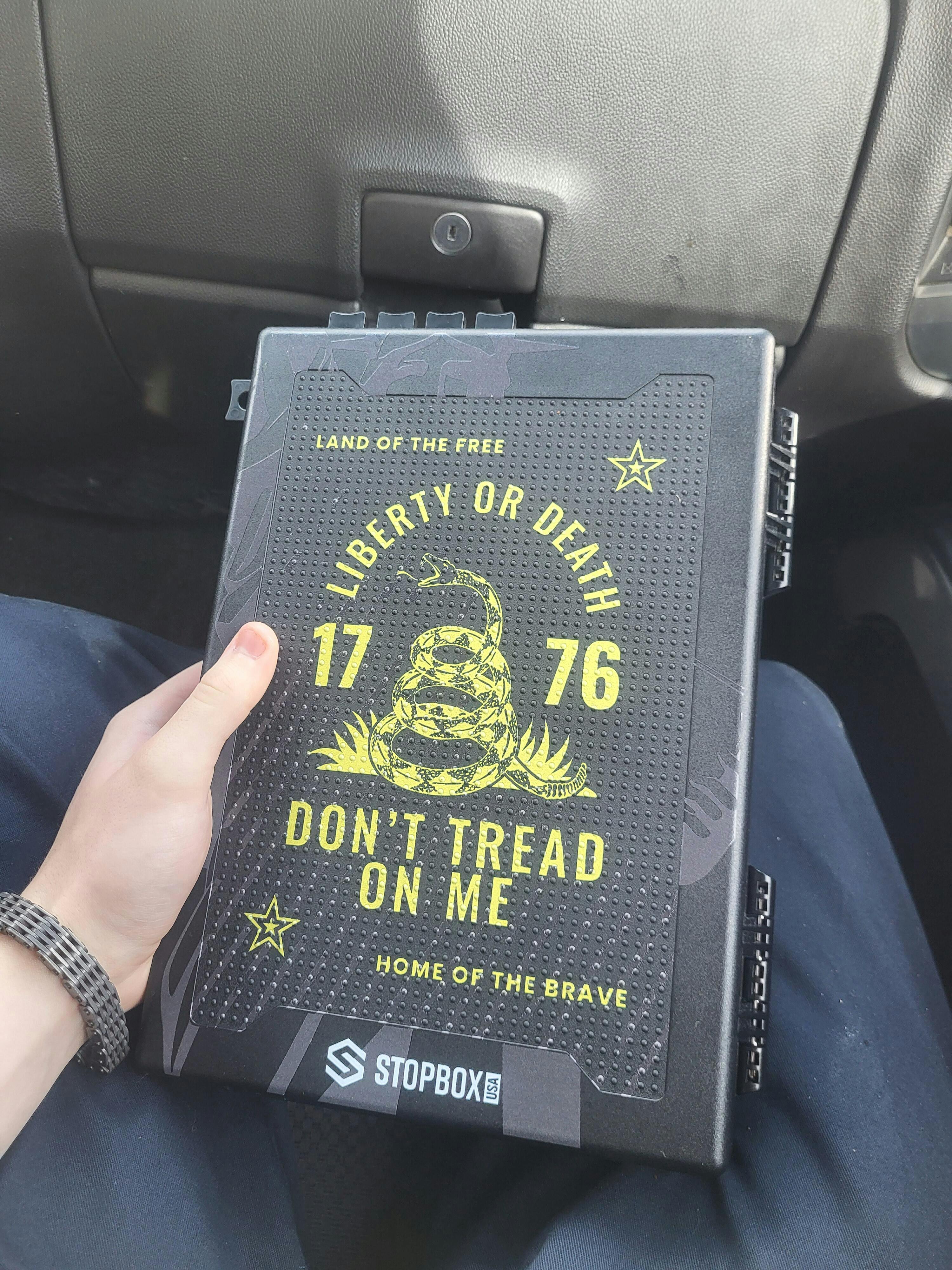 The StopBox! Made by red-blooded Americans, and honestly, the best part about it is that it's all mechanical. There are no electronic failure points, no batteries to die, no software to glitch. It just works when you need it to work.