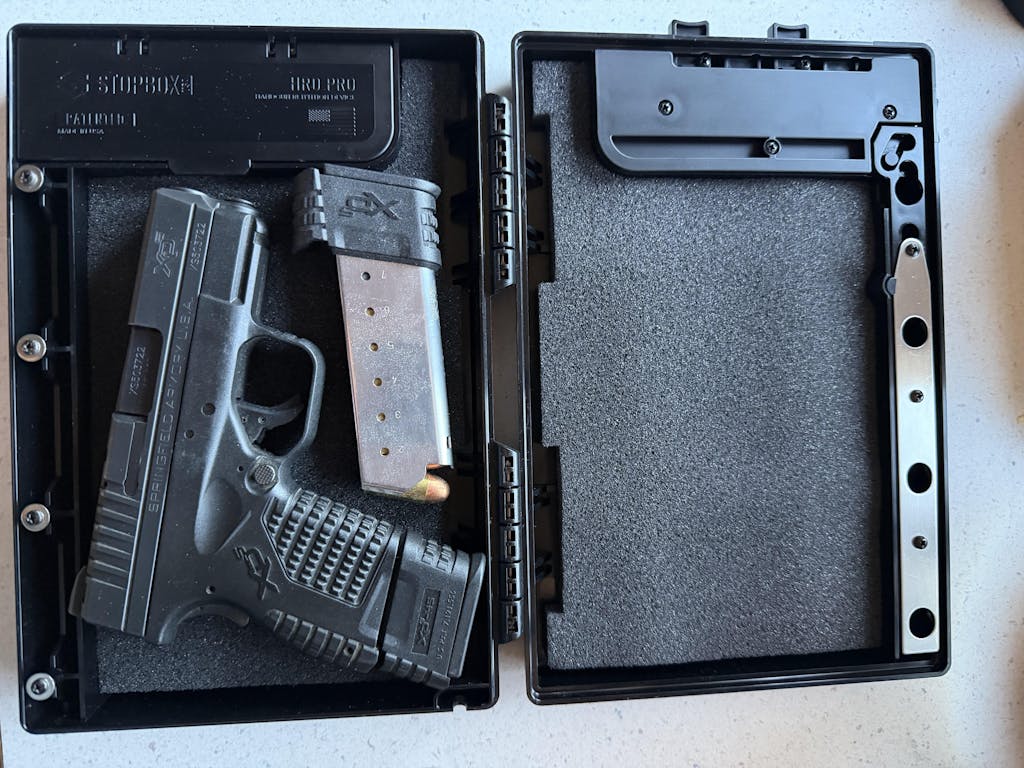 The StopBox! Made by red-blooded Americans, and honestly, the best part about it is that it's all mechanical. There are no electronic failure points, no batteries to die, no software to glitch. It just works when you need it to work.