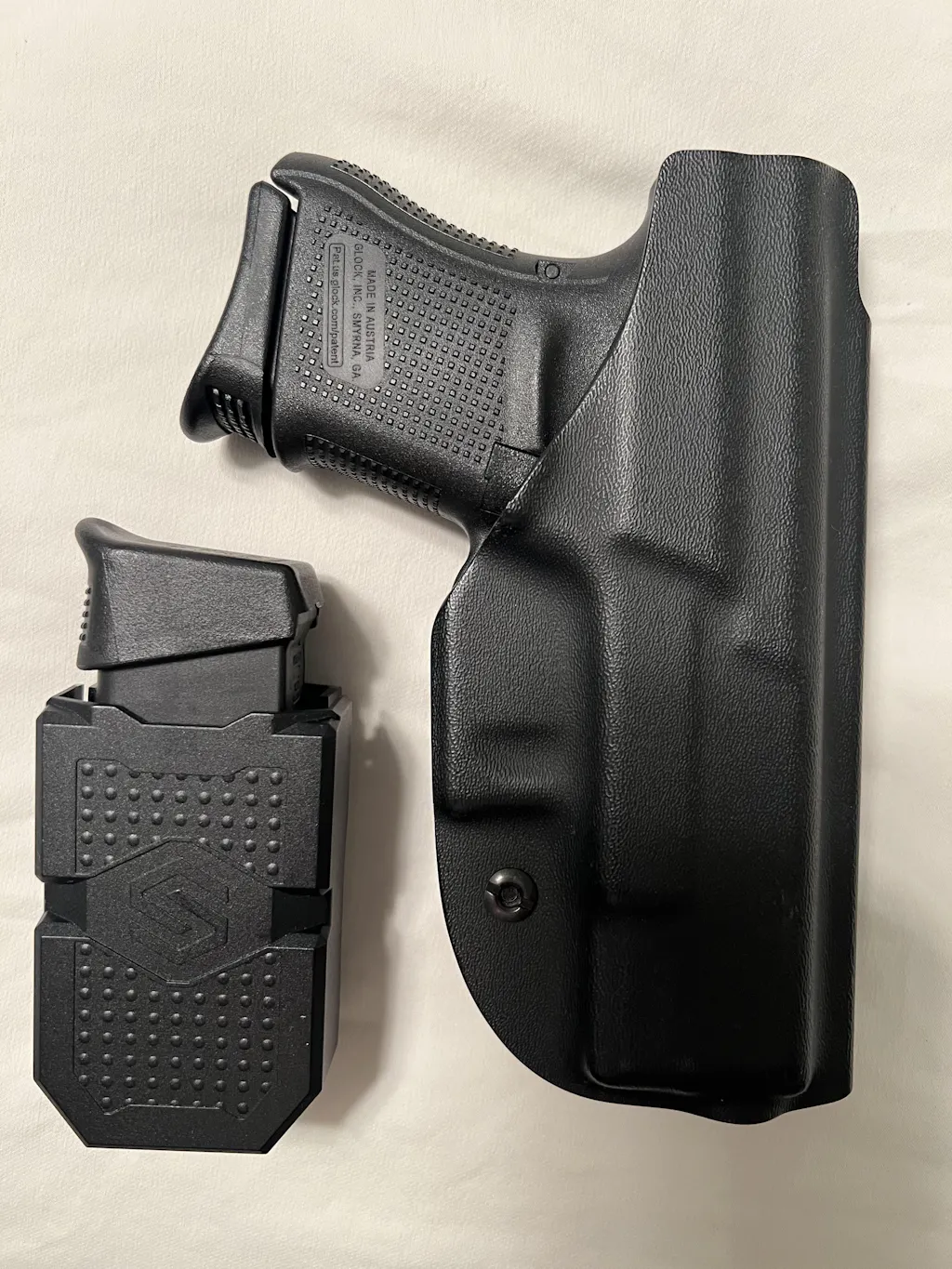 Ambidextrous for left- and right-handed carry. Use inside or outside the waistband, with or without a belt.